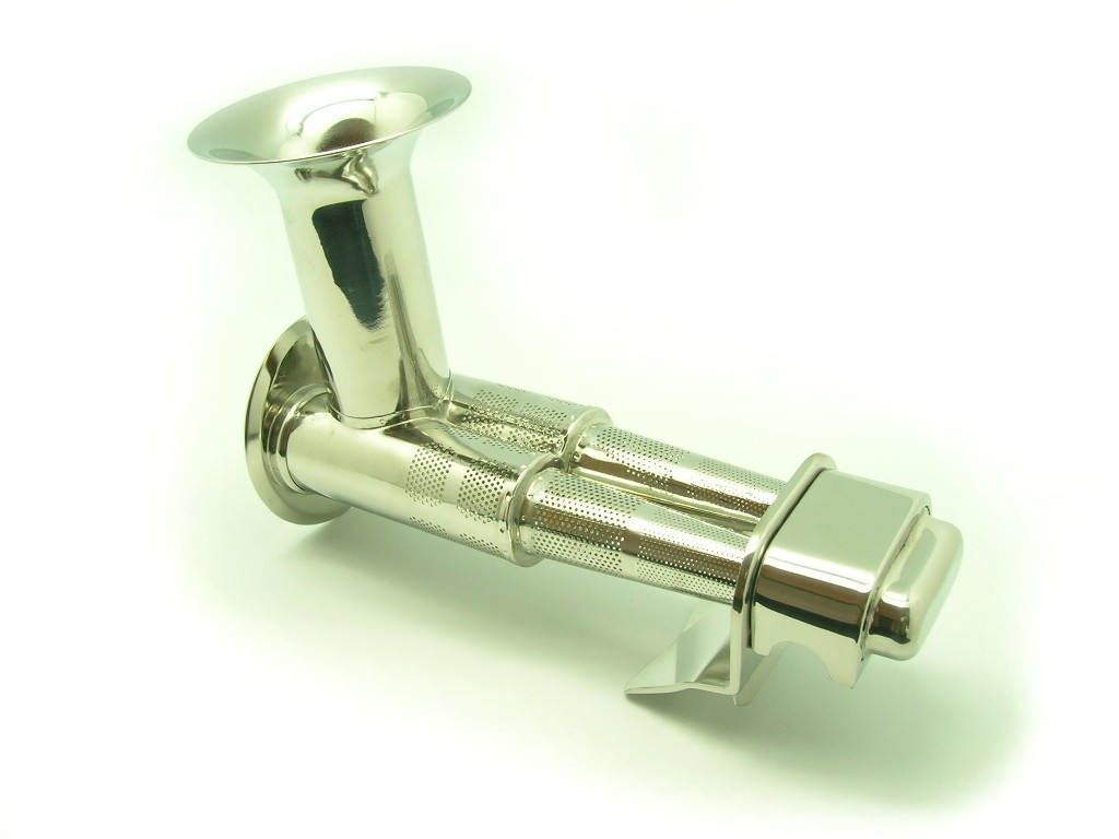 Das grobe Sieb für den Angel Juicer wird benötigt, wenn sie weiche Obst- oder Gemüsearten entsaften möchten wie z.B. Zitrusfrüchte, Orangen, Nektarinen, mehlige Äpfel, Kiwi und Feigen. Diese können das feine Sieb leicht verstopfen, was die Saftausbeute negativ beeinflussen würde. Das grobe Sieb hingegen lässt mehr Saft durch, sorgt jedoch trotzdem für eine hohe Saftausbeute aus dem Pressgut.