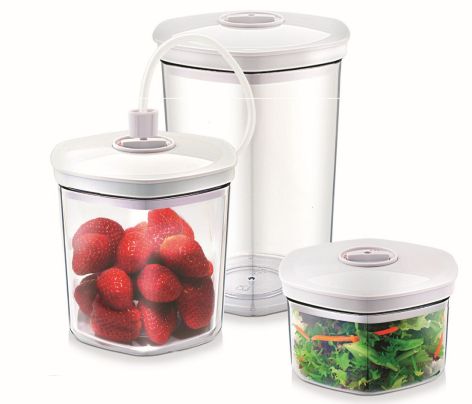 Das Vakuumierbehälter-Set besteht aus: 0,75 L Dose Höhe 7 cm, 1,40 L Dose Höhe 12,5 cm, 2,00 L Dose Höhe 18 cm. Die Behälter eignen sich für druckempfindliche und flüssige Lebensmittel, druckempfindliche Nahrungsmittel (Salat, Suppen), sowie sehr feuchte Lebensmittel (Tomaten) und lassen sich optimal vakuumieren, häufige Wiederverwendbarkeit ist möglich, Behälter aus robustem Styrolacrylnitril, Deckel aus ABS-Kunststoff, bruch- und spülmaschinenfest, passend für alle CASO Vakuumierer, stapelbar, platzsparend, Gewicht 1,0 kg