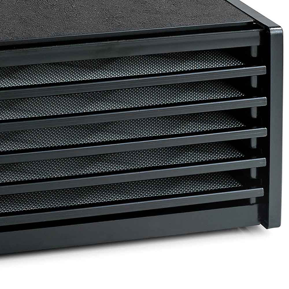 5 Kunststoffeinschübe mit BPA-freien Maschensieben, 0,74 qm Trockenraum, 48-Stunden-Digitaltimer mit 2-Zeit- / 2-Temperatureinstellung, durchsichtige Tür zur einfachen Anzeige des Trocknungsfortschritts, einstellbarer Thermostatbereich von 35°C bis 74°C, Ventilator für ausgezeichnete Luftzirkulation. Einfach zu bedienen. Enthält einen Leitfaden zum Dörren und natürlichen Konservierung, damit Sie lernen können, wie man alle Arten von Lebensmitteln dörrt. Hergestellt in den USA.