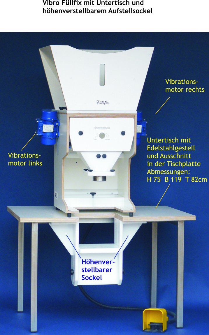 Auch Sonder-Abfüllstutzen zum Befüllen von Enghalsflaschen, Materialverdichter oder Sondergeräte (z.B. für Salz) sind möglich.