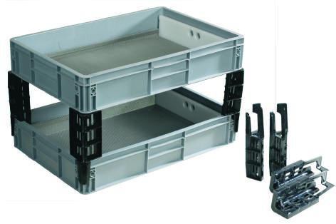 Mit Hilfe der vier Eckaufsätze lassen sich bis zu zehn Keimkisten platzsparend übereinander stapeln. Höhe 15 cm. Aus Kunststoff. Passend für beide Kisten-Größen.